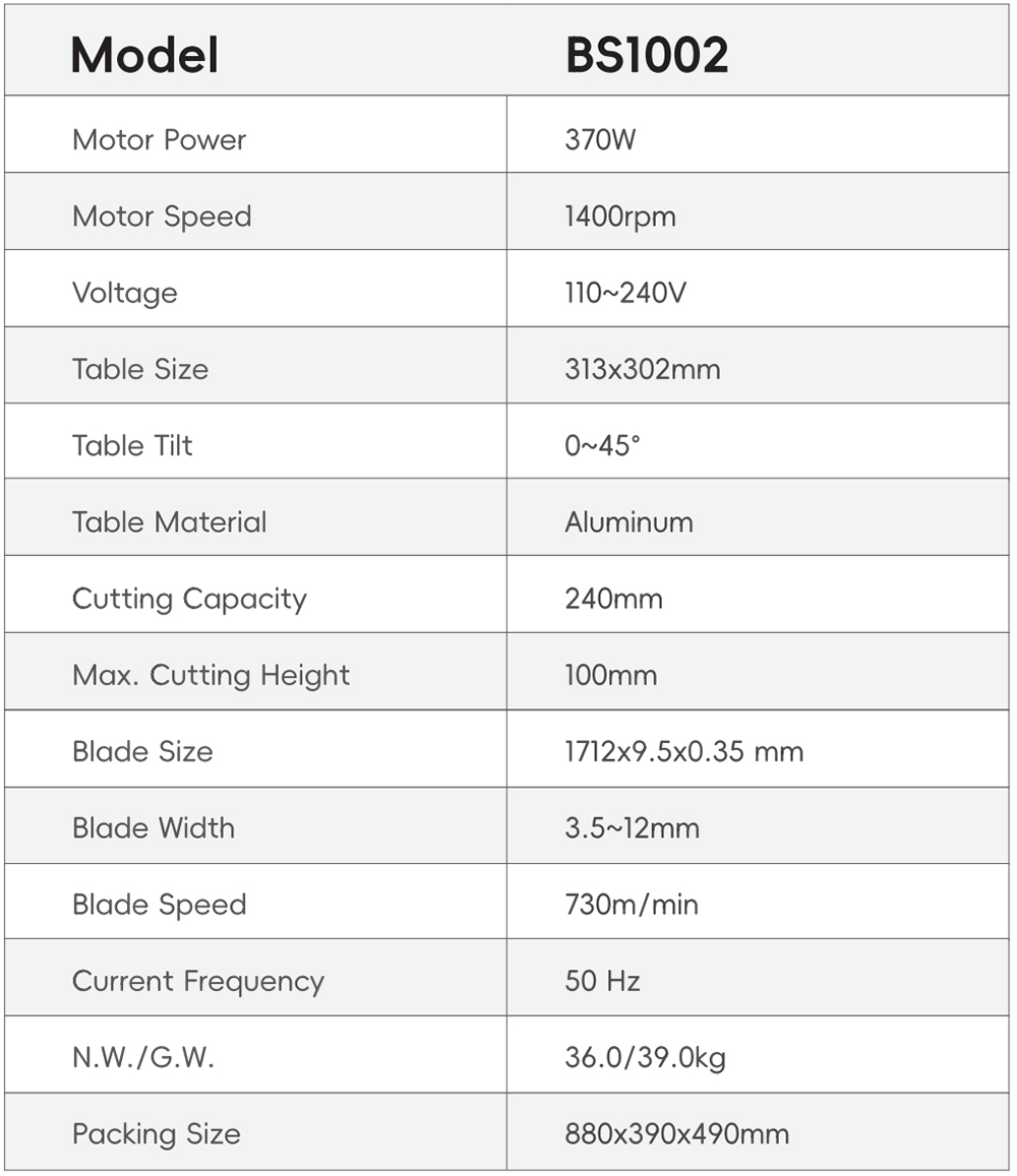 BS1002 Wood Saw Machine Efficient Band Saw for Wood Cutting Model:BS1002 Motor Power:370W Motor Speed:1400rpm Voltage:110~240V N.W./G.W.:36.0/39.0kg Packing Size:880x390x490mm Send Inquiry Live chat Product Detail Tags: Wood Band Sawvertical band saw,Curved band saw Share: PREVIOUS:BS0902 Band Saw Machine Wood Cutting Vertical Table Band Saw NEXT:DP20B Bench top drill press machine Related Products BT290F Brushless motor metal lathe machine with milling head BTL210 26mm spindle bore Mini small desktop cnc lathe machine MD3215K Jewelers Bench Grinder Dental Bench Grinder Polisher BT180V Small bench type high precision continuously variable lathe MD3220HDA Grinding Sharpening Polishing Electric Double Wheel Bench Grinder BT230G Bench 9 Step Belt Speed Lathe Machine