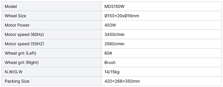 CE Supported Powerful 450W MDS150W Bench Grinder Machine with Brush Motor Power:450W Motor Speed (60Hz):3450r/min Motor Speed (50Hz):2980r/min N.W./G.W.:14.0/15.0kg Packing Size:420x268x350mm Send Inquiry Live chat Product Detail Tags: bench grindermanual bench grindermanual grinder Share: PREVIOUS:MD625LA 250W 150mm other grinders bench grinder with CE certification NEXT:MD620B Hot sale built-in wheel dresser bench grinder electric bench grinding tool Related Products BT800 Metal turning lathe machine used universal horizontal lathe machine for sale Automatic MD3220HD/762 Combo Bench Grinder Belt Sander for Workshop Use MD200BGB Long shaft powerful 200mm stationary buffing tool low speed bench polisher MD3215F 6 inch Bench Grinder Motors with Steel Wheel Guard ZJQ5125 25mm 12 step bench drilling press machine for metal MD3215FB Electric Industrial Bench Grinder Machine with 150x20/40x12.7mm Wheels 36# 80# Grit 1 Year Warranty