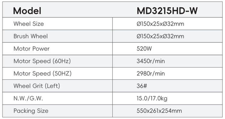 High Quality 6inch 520W MD3215HD-W Grinding Wheel Machine for Metal Motor Power:520W Motor Speed (60Hz):3450r/min Motor Speed (50Hz):2980r/min N.W./G.W.:15.0/17.0kg Packing Size:550x261x254mm Send Inquiry Live chat Product Detail Tags: Grinding Wheel Machine for Metal150x25x32mm Wheel Grinding Machine3 Times Magnifier for Metal Processing Share: PREVIOUS:MD3217HD 175mm Manual Bench grinder for metal polishing 520W with CE NEXT:MD3215HD Heavy duty industrial bench grinder machine Related Products JSBESTECH Company PM200HD Electric Bench Grinder Machine BTL400 High-accuracy GSK cnc lathe work swiss automatic cnc lathe ZJ4113HA small bench drill press machine from China factory 13mm BT20V 600W benchtop milling small mill drill machine for hobby sales MD3215FW Industrial Electric Bench Grinder Machine 60# Grit 20mm Wheel Thickness for General Purpose Metal Polishing MD3220R High Quality 350W bench grinder with cast iron base