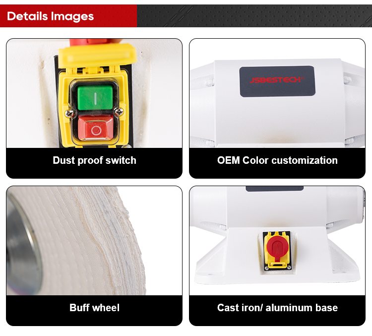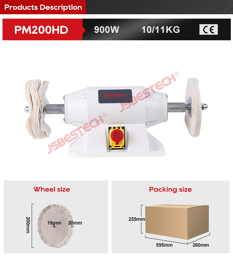 JSBESTECH Company PM200HD Electric Bench Grinder Machine Model:PM200HD Motor Power:900W Motor Speed (60Hz):3450r/min Motor Speed (50Hz):2980r/min N.W./G.W.:10.0/11.0kg Packing Size:595x260x255mm Send Inquiry Live chat Product Detail PM200HD Bench Grinder Wheel Size Ø200x20xØ16mm Motor Power 900W Motor speed (60Hz) 3450r/mim Motor speed (50Hz) 2980r/min Tags: Electric Bench Grinder MachinePolishing Machine,900w Stainless Steel or Metal Polishing Machine Share: PREVIOUS:PS350 2200W industrial bench grinder polisher machine NEXT:PM200 polishing machine polisher bench grinder Related Products MD3215R 250W electric bench grinder motors power tool BT290F Brushless motor metal lathe machine with milling head ZJ4120 20mm 750w mini bench drill press machine for metal MD3220HDA Grinding Sharpening Polishing Electric Double Wheel Bench Grinder BT410A High precision lathe machine in china poreba MD200BGB Long shaft powerful 200mm stationary buffing tool low speed bench polisher Leave a Reply Quantity: Company Name: Fax: +86 0515-88663359 8615000828330 cindy@jsbestech.com