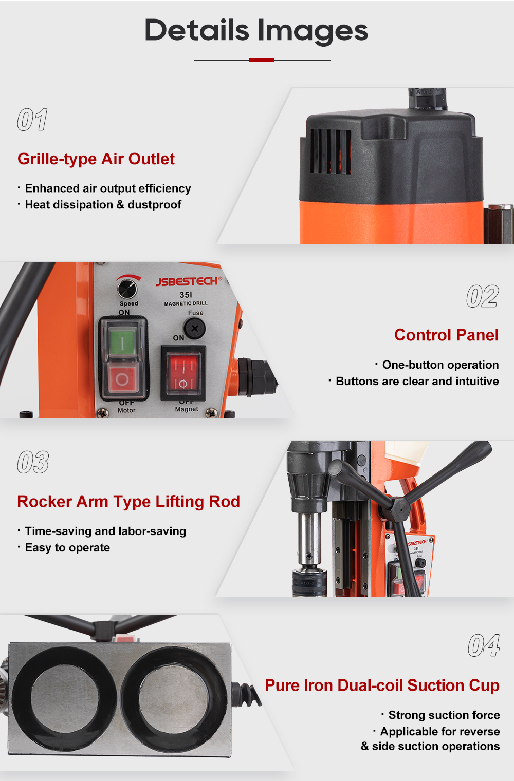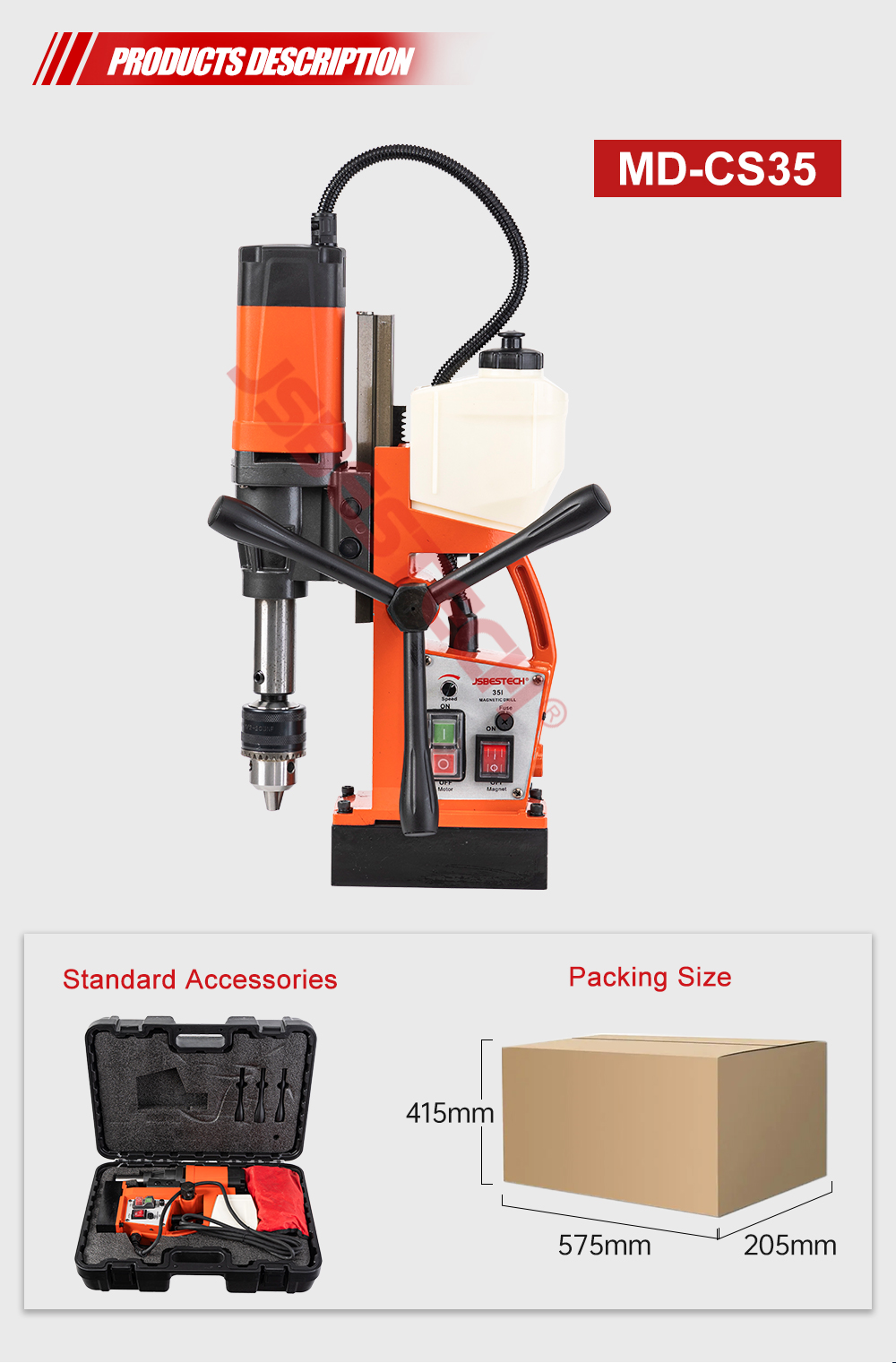 Portable MD-CS35 Magnetic Drill for On-Site Steel Construction Projects Model:MD-CS35 Rated Voltage:110V-240V Rated Frequency:50Hz/60Hz Motor Power:1100w Variable Speed:200-750r/min Packing Size:575x205x415mm Send Inquiry Live chat Product Detail Tags: Magnetic Drill for On-Site Steel Construction ProjectsHobbyist Professional UseIndustrial Core Drilling Share: PREVIOUS:Torque-Rich MD-S30 Magnetic Drill Press for Shipbuilding & Marine Engineering NEXT:High Precision MD-SY50 Magnetic Drill for Aerospace Component Fabrication Related Products BTL500 cnc metal working lathe machinery industry equipment JSBESTECH Company MD-150T Electric Bench Grinder Machine BT500 heavy duty horizontal lathe metal lathe factory manufacturer MD1801 Easy accessibility hand grinding machine disc and belt sander for Wood Process ZJ4120 20mm 750w mini bench drill press machine for metal MDS-150/50 Electric Bench Grinder Machine