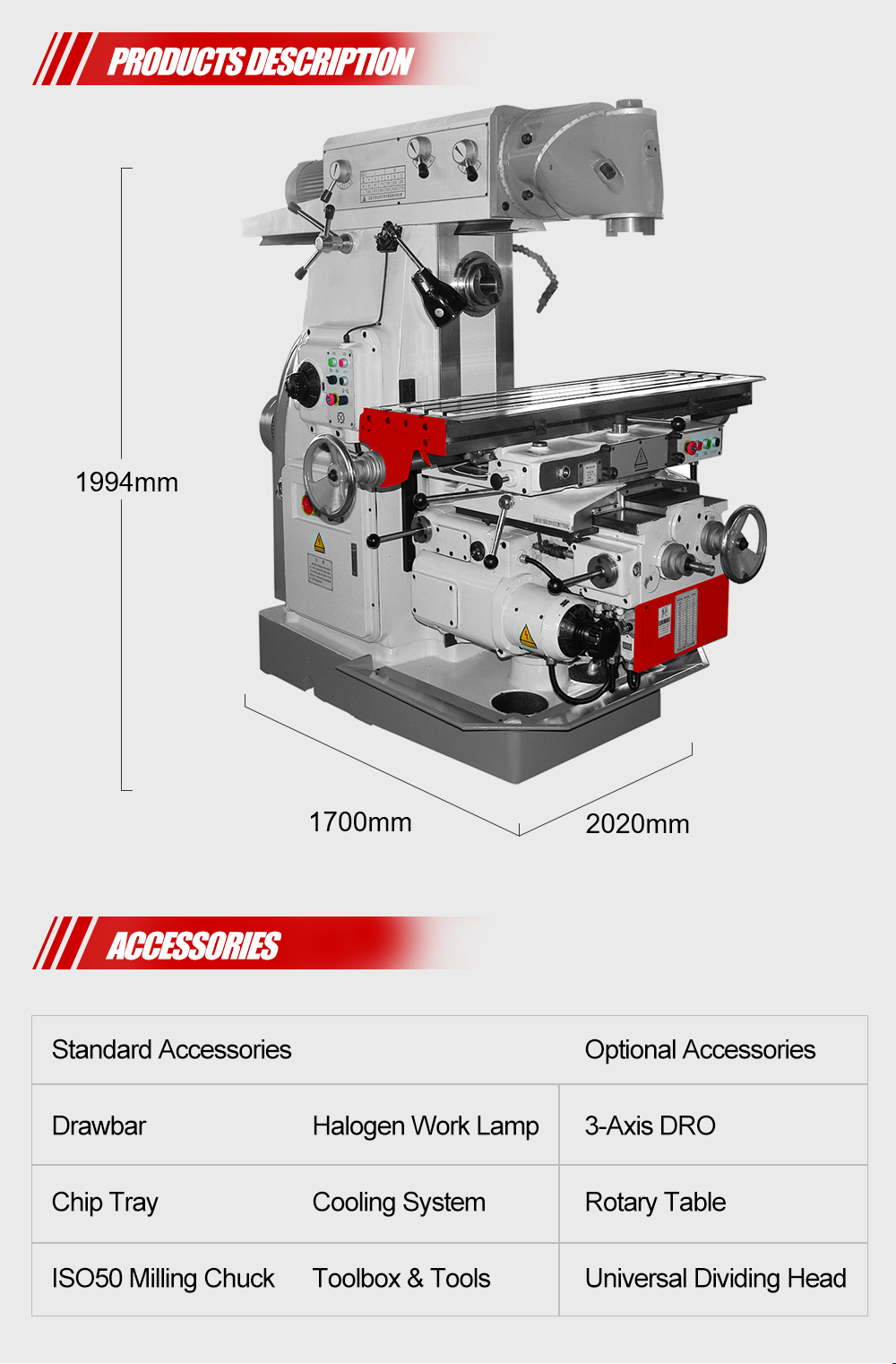 Table Center To Vertical Spindle:190~510mm