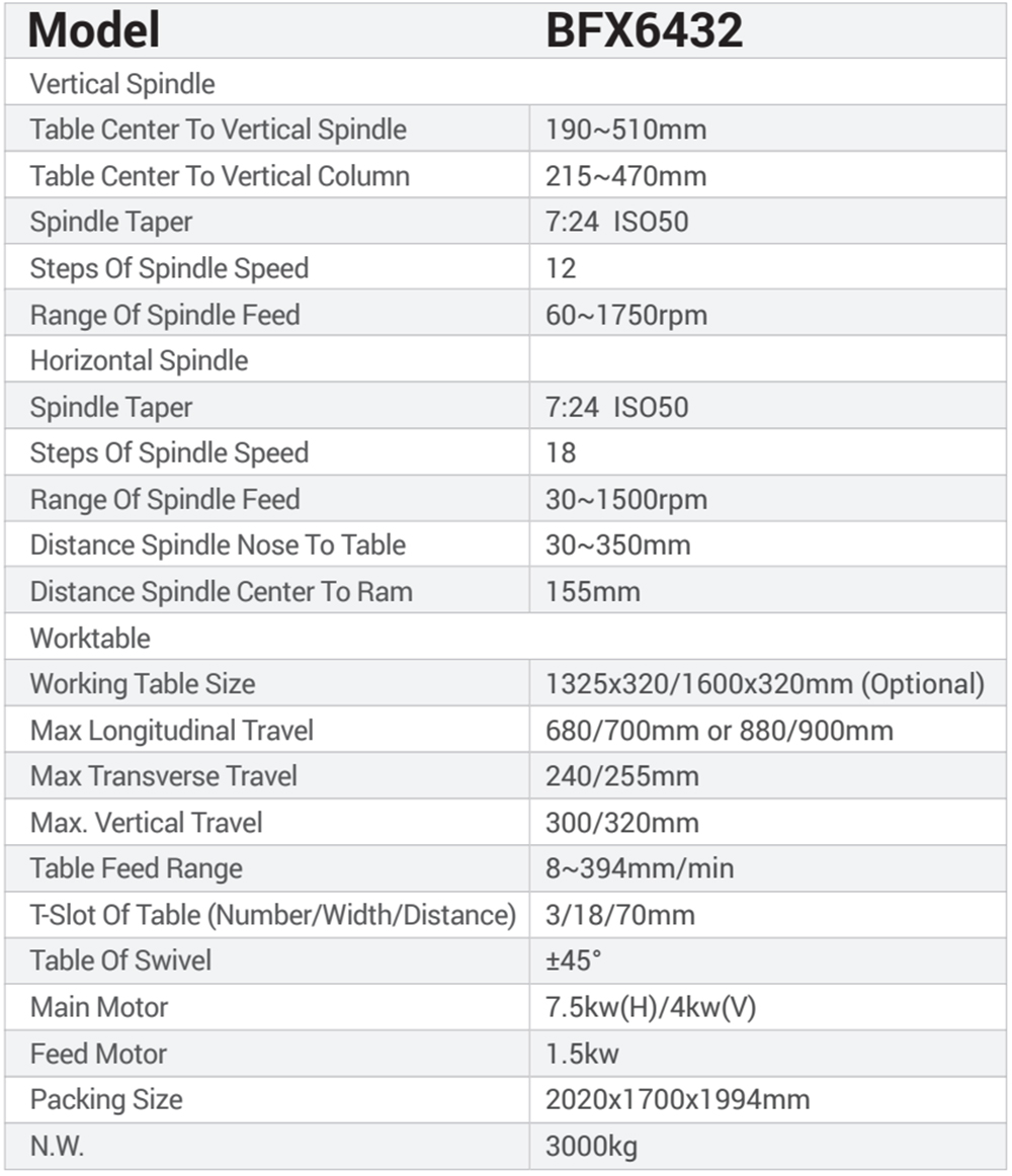 Universal Milling Machine BFX6432 With Vertical/Horizontal Spindle and Rotary Table